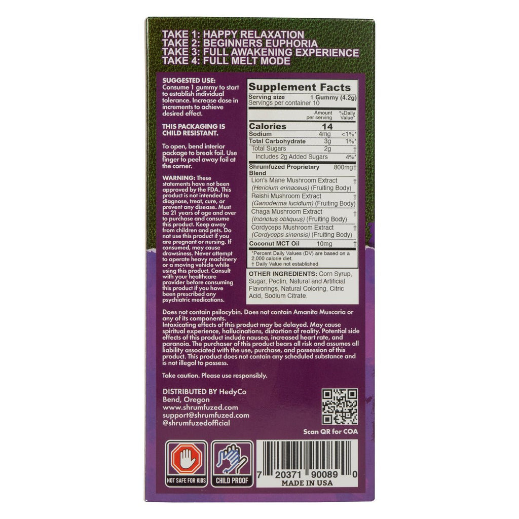 Dazed x Shrumfuzed - Mushroom Gummies - D9/CDB/Shrumfuzed NooTropic Blend - 8600mg - Moon Drop Grape
