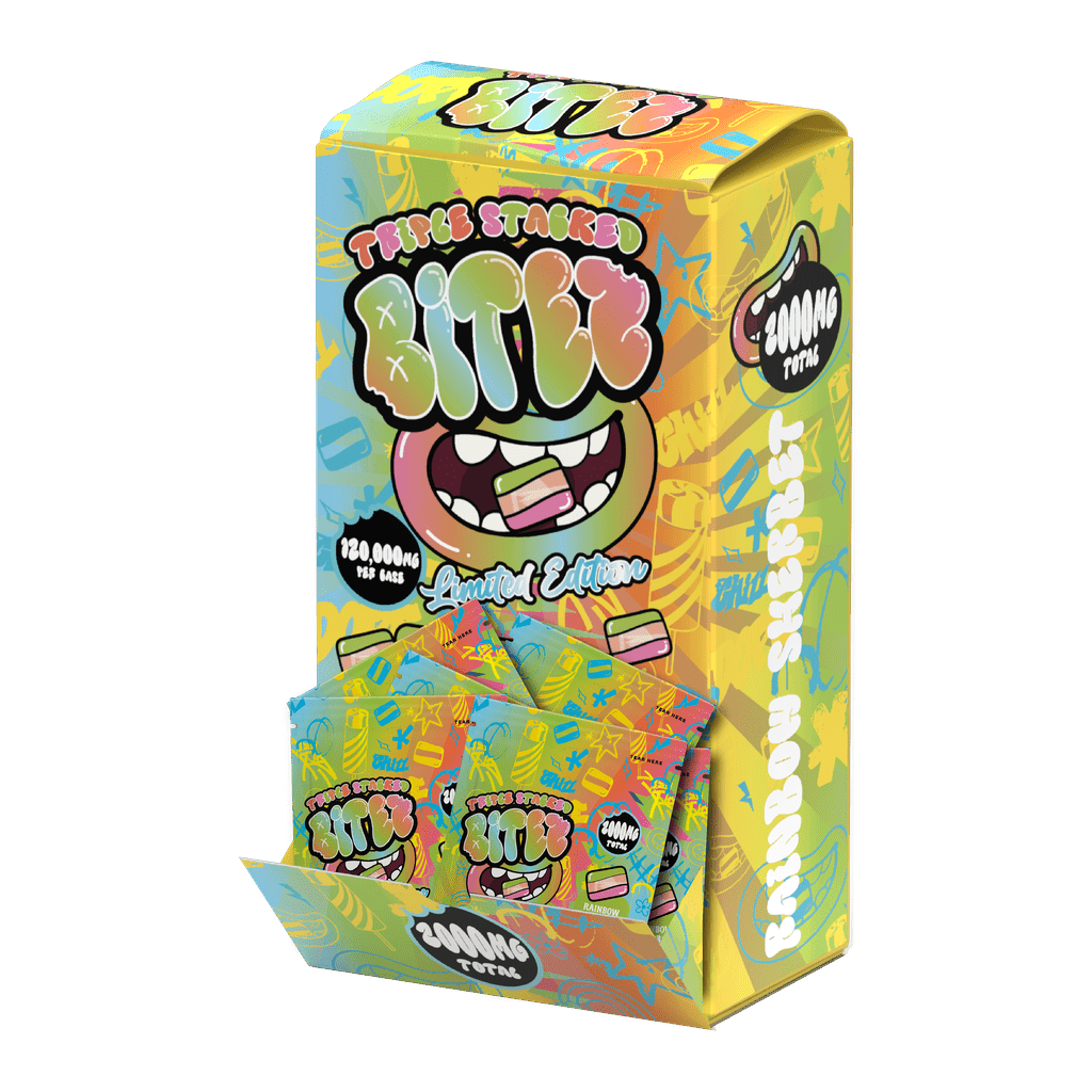 Double Stacked Bites 120,000mg Display (60-2ct Packs) - Rainbow Sherbert
