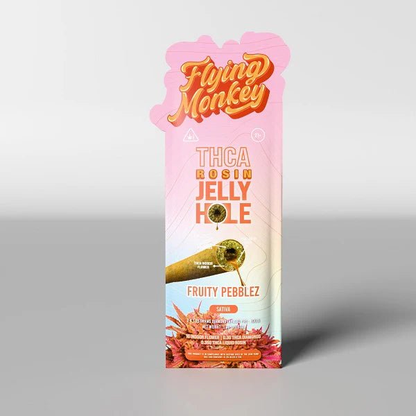 Elevate your smoking experience with Flying Monkey Jelly Hole Rillos. But that’s not all – we’ve infused these pre-rolls with hemp-derived THC-A, THC-A diamond, live resin, and tantalizing terpene flavorings.