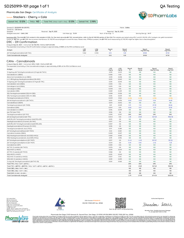 Stackers by Cali - D9+THCP+THCB - 3ct Pouch - 20 Pack Display - Cherry Cola