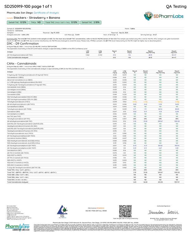 Stackers by Cali - D9+THCP+THCB - 3ct Pouch - 20 Pack Display - Strawberry Banana