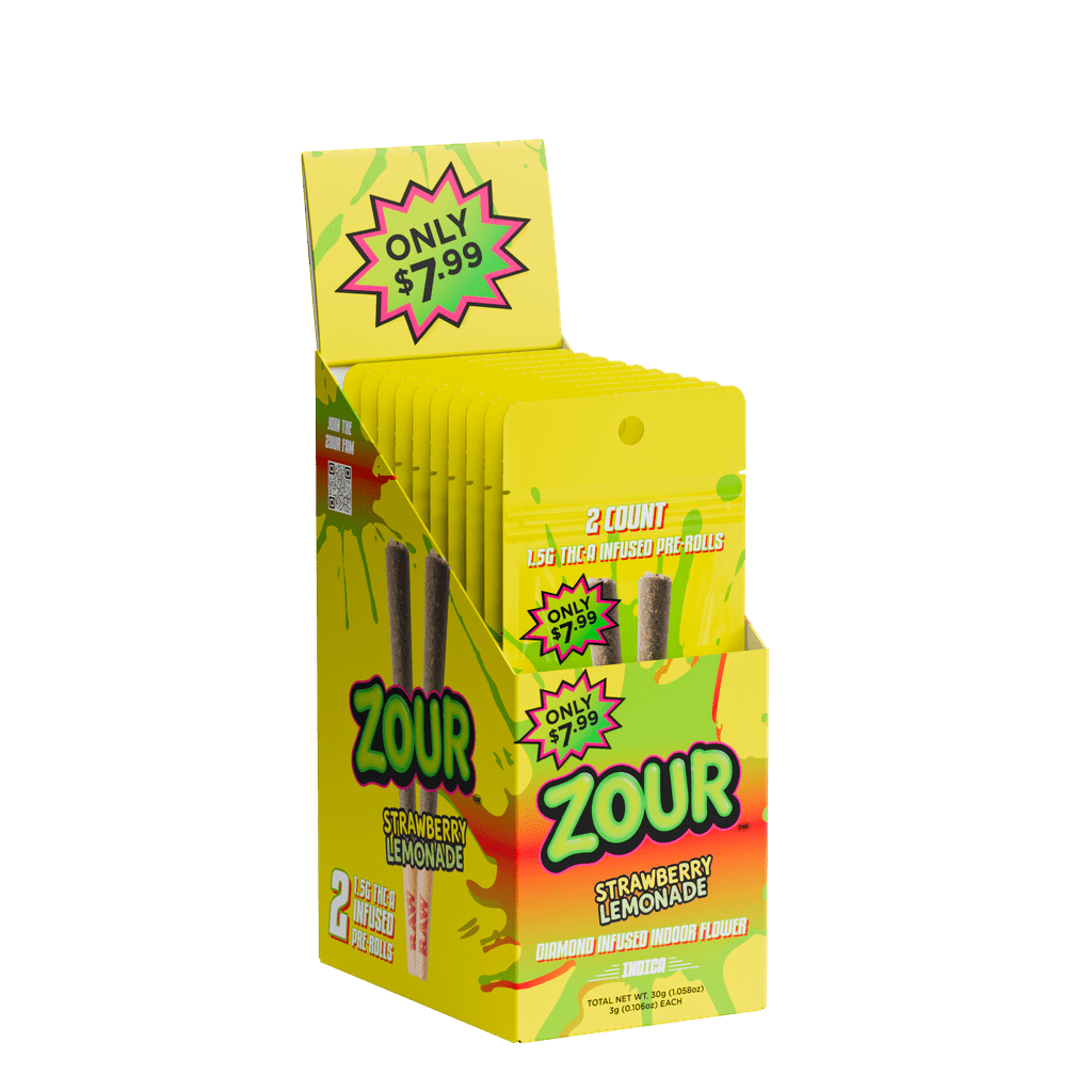 Zour Stash 2ct Diamond Infused THCA Pre Rolls - 10ct Display - Strawberry Lemonade