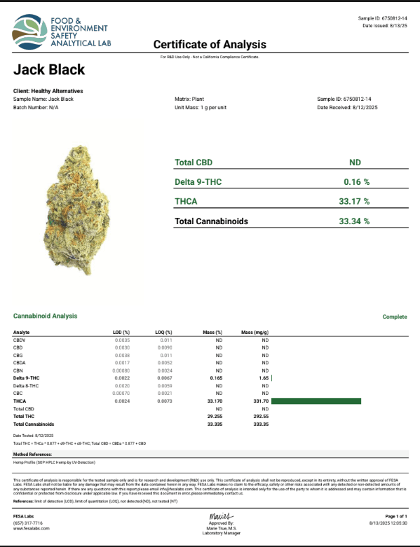 DS - Bulk Thca Indoor Exotic Flower - Jack Black - 30.47% - Indica