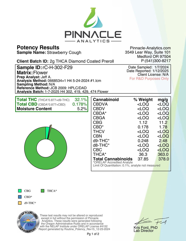 Bulk THCA Diamond Dusted Pre Rolls - 10ct - 37.85% - Strawberry Cough