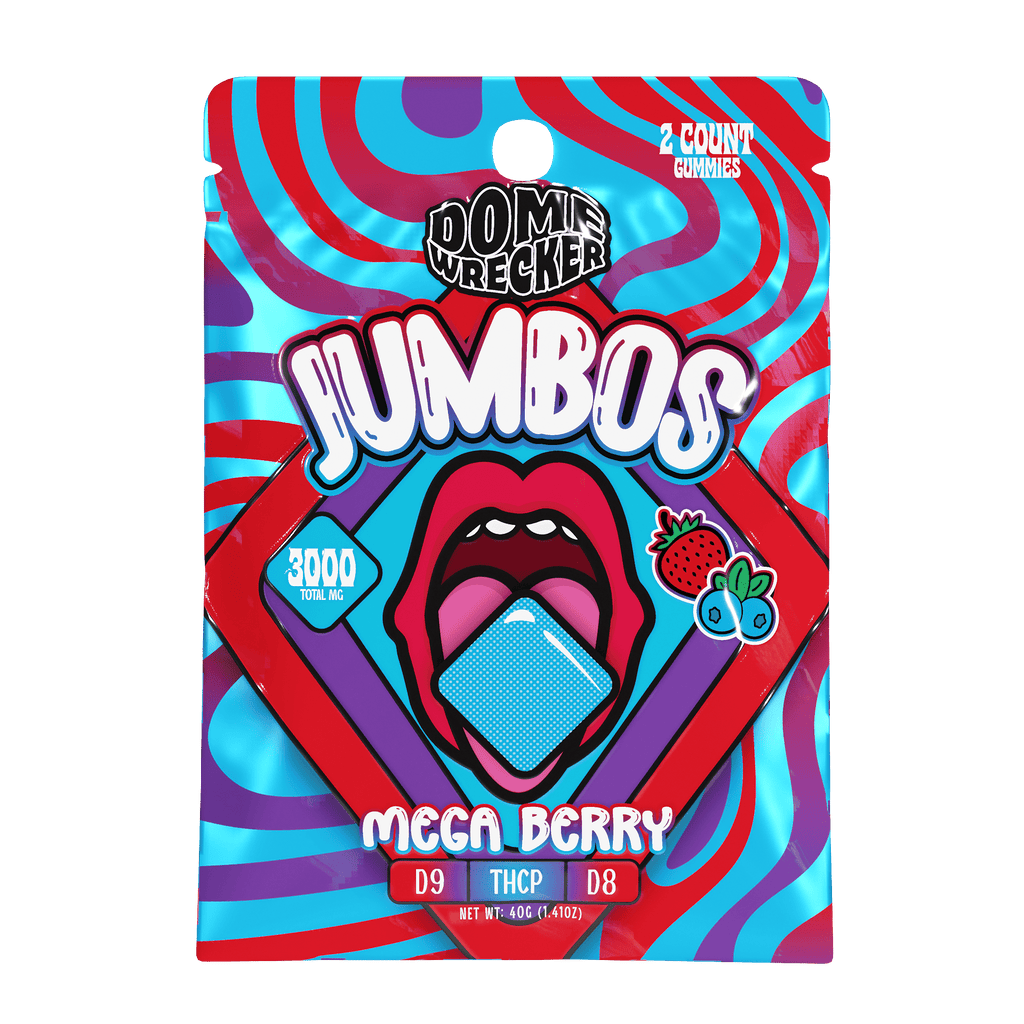 Domewrecker JUMBOS Gummies deliver an ultra-high potency cannabinoid experience for seasoned users. Each pack contains 2 jumbo gummies with a combined 3000mg total potency (1500mg each) for long-lasting, powerful effects.