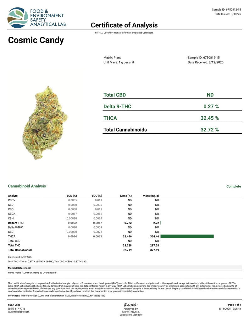 DS - Bulk High End Exotics - Mavens Small Batch Thca Flower - Cosmic Candy - 32.72%