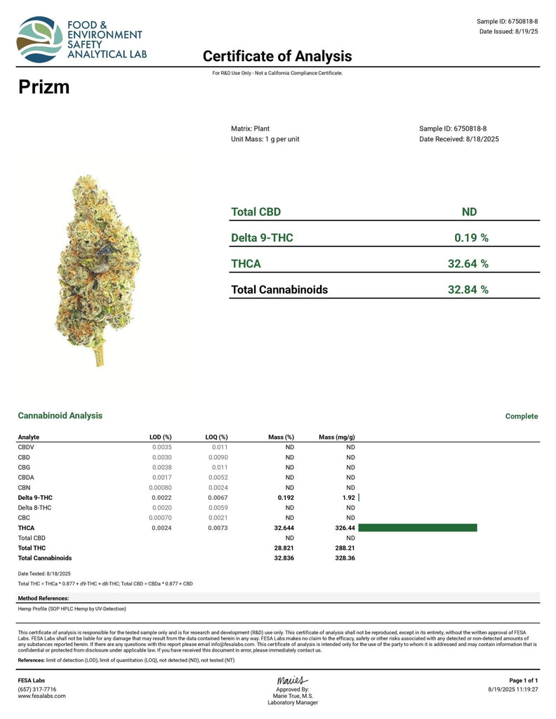 DS - Bulk High End Exotics - Mavens Small Batch Thca Flower - Prizm - 32.84%